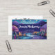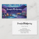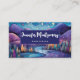 Affärskort med en vacker illustration. Vit och fantasifull vibe. Ett vackert landskap av träd, berg och en likviderande flod. Mystisk vibe.
