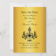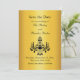 En elegant-kristallchandelier anger tonen för Spara datumet och händelsen som ska föregripas. Den trycks på ett illustrerat guld pappert och är perfekt för fancist kväll. Rulla ner om du vill se den fullständiga samlingen.