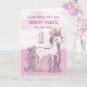En söt rosa enhörning precis som din storasyster är dotter hoppar omkring med nummer ett! Detaljer med guldglans är invävda i hennes man och svans. Perfekt kort för att önska din storasyster är dotter på hennes 1-årsdag!