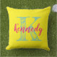 Den stora färglösa anpassningsbarna namn monogram gult utomhus Pillow. (20 x 20 tum) Personlig-kuddar monogrammade med ditt namn och första brev. Anpassningsbar och färg. Malldesign för trendigets penselskripttypografi. Coolans hemdekoration för trädgård, bassäng-däck eller porch. Gör egna dekorationer för sitta, sjö hus, strandhem, sommartid, båt, yacht osv. Handstil för teckensnittsdesign. Roligten har en glad och bra design med rosa och teal färg. Tillgänglig på standardnivå och stor storlek. Finns även som inomhusdyna.
