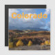 Från Dallas Divides överkant, mellan Ridgway och Telluride, Colorado, kan du se för alltid över aspens fallande gulter och golder till silhuetten av Sneffels Range. Den här stora magneten blir en underbarare dekoration för kylskåpet eller filskåpet och påminner om perfekten Colorado resa. Skaffa en till dig själv och flera till med din familj och dina vänner. Du kan till och med lägga till ett kuvert för att skicka det på väg.