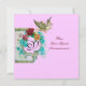 Elegant, rolig vintage stil blomsterdesign med en baby och flygande stork bland vackra rosa, röda rosor, turkosa vårblommor av Bulgan Lumini (c).