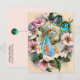 Elegant blommigt krona med ro, blommor, färgstark, pulserande vintage stil med baby och flygande stork bland den vackra romantiska hund, rosa, röd ros gem av Bulgan Lumini (c).Enkel att anpassa med din egen text som ett meddelandekort, platskort, rosa-till-datum, tackkort, babyduschar, barns sparor eller så mycket som möjligt.. Du vill!