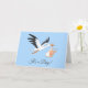 Storken transporterar baby i bunten. Baby tar en selfie med en mobiltelefon.