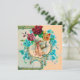Elegant, färglös, pulserande vintage stil blommigt med baby och flygande stork bland den vackra romantiska rosan, röd ros, tealblått vår blommor av Bulgan Lumini (c).Enkel att anpassa med din egen text som ett meddelandekort, placera kort, spara-till-datum, tackkort, babyduschar, barns födelsedagsfester eller vad du vill!
