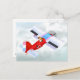 Sprid de bra nyheterna med det här postkortet, med Stork, ge oss tummen medan han skapar sina leveranser i ett biplan.