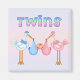 Unika babygåvor till New mamma eller Mamma. Baby Onsies, inbjudningar, postkort, nyckelringar, magneter, knappar party favors, keepsaké mugg med mera. Varje objekt kan vara personlig med namn och data. Den här designen är för en flicka och en pojke tvilling och har rosa och blått färg.