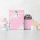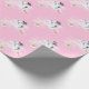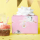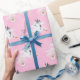 Stork som flyger i moln med baby i en filt på rosans bakgrund för flicka presentbakgrundsbild färg kan ändras.