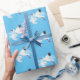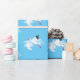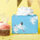 Stork med pojke i moln på blå bakgrund. Bakgrunden till färg kan ändras.