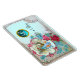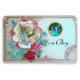 Elegant, färglös, pulserande vintage stil blommigt med baby och flygande stork bland den vackra romantiska rosan, röd ros, tealblått vår blommor och en smart 3D-gemsten av Bulgan Lumini (c).Enkel att anpassa med din egen text och egna föreställningar för babyduschar, barns födelsedagsfester, eller nästan vad du vill!
