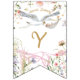 Den här babyduschbunten har ömtåliga vilda blommor som är sammanflätade med ett rosa handmålat band och en vintage stork som bär ett hem i flicka och en annan stork med ett paraplyöverdrag och söta baby i mjuka vattenfärgtoner. Du kan ändra texten på första och sista flaggor samt ändra teckensnitt, stil, storleka, färg och placering. Se matchande artiklar i Wildblomribbon och Bow Baby Shower Collection i min butik.