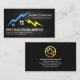 En grumlig stormkväll blinkar blått och gult blixt på ett hem och visar sin silhuett. Blixtens kraft kommer från ert prestigefyllda namn och slagordet. ; Du kan ändra textkommentarerna till slogan för att uppfylla dina behov av publicitet. Kortets bas är namn och dess kontaktuppgifter.