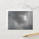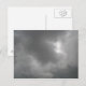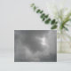 Det här vykortet innehåller ett foto av en samling mörk grått-stormmoln som fångar vädrets skönhet och kraft. De hotande molnen är en blandning av mörk och blek grått-skuggor. Fotografiet togs före en kraftig regnstorm.