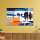 Detta suggestiva abstrakta konstverk fångar ett flyktigt ögonblick efter en storm, där figurer rör sig tyst genom ett öppet, regn tvättat landskap. Förenklade silhuetter vandrar över skiktade plan av blått, grått, vitt och varmt ocker, som antyder våt mark, tillbakadragande moln och ljus som långsamt återvänder till himlen. Kompositionen känns rymlig och kontemplativ och balanserar svala atmosfäriska toner med subtil värme under ytan.