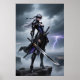 En ensam krigare står på kant i världen - blind, pansrad och orörd. Denna dramatiska poster har en futuristiska kvinnlig stridskvinna i gotsk svart pansar med glödande neonaccenter, en lång katana på ryggen och silver hår som flödar i vinden. Hon ansikte stormen med kraft och tystnad, balanserat på ett klick under ett turbulent himmel. Den moody belysningen, den mistvänliga bakgrunden och den biografatiska blicken ger episka känslor till biet. Perfekt för fläkt av Nier:Automata, cyberpunk-krigare och mörk fantasykonst. Ett fetstilt, kollektivt utskrifter som uppmärksammas i alla rum.