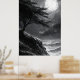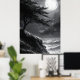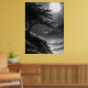 Stormig Klippa Månsken i Monokrom Svart & Vitt Poster