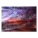 Vit fraktal mönster som vrids över en orange- och blåfärgad bakgrund, som den soluppgång som bröt sig igenom stormen.