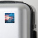 Magnet med ett uppmuntrande talesätt: Storms varar inte för evigt. Ett fantastiskt foto. En scenisk plats. En trevlig lugn sjö med trädocka utåt. Genom att ställa in sol får du ett vackert färg i himlar, ett levande rött och blått.