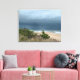 Stormy-strandscen är en originalmålning. Moody lagrar av moln och regn över en grönt och grått-hav. Vita vatten vinkara stänk på en strand.