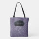 Den här väskan har valfritt namn eller ord på en mörk grått-tråd under molnljusa blixtbultar.