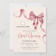 I den här inbjudan till storöppningsföretag visas en modern rödbåge och ett färgat band och en anpassningsbar som du kan anpassa med din händelseinformation. Utformningen ger utrymme för din logotyp.