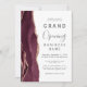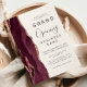 Med den här elegantens moderna inbjudan till inbjudan-kunder till den stora öppningen av ditt företag, som har en burg vattenfärgsagat gräns som trimmas med faux ro guld glitter. Med anpassadet kombineras grått-handskrift, tryckplåt och kursivt typsnitt på vit bakgrund. Den bakomliggande sidan har en matchande burgundisk och ro guld agate-design.