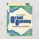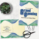 Den här malldesignen överst och grund i gräns har en grönt och blå vattenfärgsvåg i stil med ett stort öppningsmeddelande från BOLD. Baksidan har detaljerna. Anpassa texten, ta bort all text eller redigera med verktyg i designen för att markera det teckensnitt stil, storlekt och färg som du vill ha.