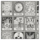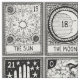 Illustrerade major Arcana-tarotkort. Aktuellt: 0-21 kort - Elfenben: Fol, Magician, High Priestess, Empress, kejsaren, Hierofant, Älskare, kariot, styrka, Hermit, Hjällen av Fortune, Rättvisa, Hanged Man, Död, Temperance, Djävulen, Torn, Stjärnet, Måne, Sol, domen och världen. pärlor, svart
