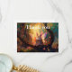 En viskbunny med färglöst vingar sitter på ett gren i en förtrollad skog, omgiven av glödande ljus och fallande löv. Den pulserande och magiska atmosfären antyder ett fantastiskt äventyr. Tack i dekorativ jokertext