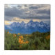 Detta foto presenterar en sommarsolnedgång i Wyoming med den storslagna Tetonsen i bakgrunden.