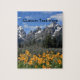 Denna fotografiska bild visar den storslagna Teton nationalparkbergskedjan på min favorit- tid av året - fjädra, på en solig dag med klara ljusa blå himmel, några wispy vitmoln, och snö på berg nå en höjdpunkt, och en hel grupp av guld- blommor som blommar i förgrunden. Du kan personifiera denna produkt, genom att tillfoga ditt eget, daterar, namnger, eller meddelandet.