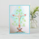 Akvarell av julgran med baby i krubba och Största gåvan genom tiderna orden.