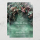 En vit vattenfärgsillustration av lush foliage in emerald grönt, som gungar med fairy ljus och magiskt damm, dekorerar detta sommarbröllop i vår förutom datuminbjudan med ett förändrad skogstema. En elegant, modern räddar datumet för ett sagolikt bröllop. Perfekt för brider som kärlek den sagda skogsmiljön, mjölskogen eller trädgårdstemat och framkallar grönt med en aning lavendellila.