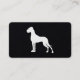 Ett minimalistiskt svart visitkort med en kraftfull vit stor dansk silhouette, utformat som en flexibel varumärsmall för uppfödare, kennlar, tränare, veterinärer och husdjurföretag som vill ha ett rent, modernt hundmotiv som kan anpassas online med deras egna kontaktuppgifter, slogan och logotyp.