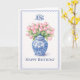Fira henne med den tidlösa charmen hos Grandmillennial-estetiken. Detta eleganta födelsedags kort har en klassisk blå och vit Chinoiserie-krukor fylld med mjuka rosa tulpaner. Med sin traditionella scalloped-kant och sofistikerade serif-typografi är det det perfekta valet för en mamma, syster eller vän som älskar förfinad, klassisk stil. Helt anpassningsbart – lägg till ett monogram eller namn på framsidan och ett personligt meddelande på insidan via Zazzles designverktyg.