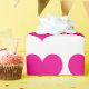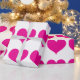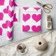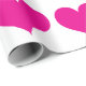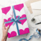 Denna roligt som slår in papper, presenterar ljusa shock rosahjärtor på en vitbakgrund.