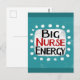 "Big Nurse Energy" är en söt textdesign i blått med svart och röd text, tillsammans med en vit accentform och vita texturerade vita prickar runt den.