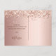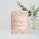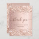 Ett tack för en Möhippa. En ro-guld tittar metallisk bakgrund. Med faux glitter stoft. På stora bokstäver och text framtill: Tack, text, titel och datum. Tillbaka: Anpassa och lägg till tackkort och namn.