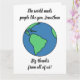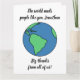 Utformningen har en teckning av jorden med ett meddelande som lyder: "Världen behöver människor som du, Jonathan" (du kan anpassa namn eller hela meddelandet). Under teckning, ett budskap som säger "stort tack från oss alla". teckning har blå och grönt vatten och markområden och har svarta konturer. Texten är i ett svart teckensnitt som liknar en elegant och en modern penseltext.