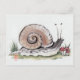 Ett vykort för "Snigel Mail" för en anteckning, inbjudan eller påminnelse. Den mjuka vattenfärgsgrafiken på vit bakgrund är söt och vit, med lite gräs i grönten och små röda svampar. Undertecknad med mitt "TUZI"-märke i rött. Ett unikt kort för alla djur och naturområden i älskare. Original, unik, vismisk teckning och design av Tuzi Williams.