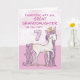 En söt rosa ponny precis som din stortättedotter som trippande med siffran sju! Gyldena detaljer är invävda i hennes man och svans. Perfekt kort för att önska din stortättedotter en lycklig 7-årsdag!