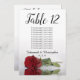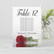 De vackra bordsnumren gör det enkelt för dina gäster att hitta sina platser på bröllopsmottagningen. De har en enkel men ändå elegant utformning med manusetypsbokstäver och ett enda gammaldags röd ros som ljuger på sidan och reflekterar i vatten. Kortet innehåller ett sittplatskort med 10 namn. Det finns också utrymme för parets datum namn och bröllop. Det här kortet finns i många storlekar och är större än våra standardkort för bordsnummer.