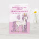 En söt rosa ponny precis som ditt stortrittbarn är travande med siffran fyra! Gyllene detaljer är invävda i hennes man och svans. Perfekt kort för att önska ditt stortrittbarn på 4-årsdagen!