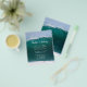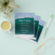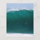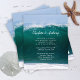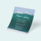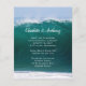 Inbjudningsmall för bröllopsinbjudan till havsvågsbudget. Havsblått grönt vatten är bakgrunden till vit text som en stor våg hiss från havet. Parets första namn är skript högst upp och resten av texten skrivs ut i styckeform. Inkludera en mottagning adress eller inte. Utformningen passar detta storleka papper eller storleka 5x8, men inte den största pappra. Omvänd har också den stora vågbilden.