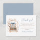 A cute baby shower thank you card featuring a collection of storybooks with a blue bow. Designed by Thisisnotme©