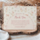 A sweet and whimsical birthday design featuring charming silly goose illustrations, soft florals, and delicate bow accents in a warm blush palette. The arched layout adds a vintage storybook feel, creating a soft and timeless look that’s perfect for a first birthday celebration.