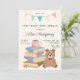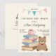 Every kid loves to read, no matter their gender! Stock a baby’s library at a bring-a-baby-book baby shower. Add instructions for bringing a book to the party with these “Baby´s First Library`` shower invitations! You can also use these invitations to invite guests to a baby shower hosted at a bookstore or library or your home! Perfect for parents-to-be who are teachers, librarians or bookworms, who just love to read! The modern design with a vintage twist features a stack of books with a cup of tea on top and a teddy bear on the side, all in pastel natural colors. Perfect for a gender neutral shower, baby boy or baby girl! The text in handwritten typography and script is totally editable by clicking on the ´´Personalize´´ button.