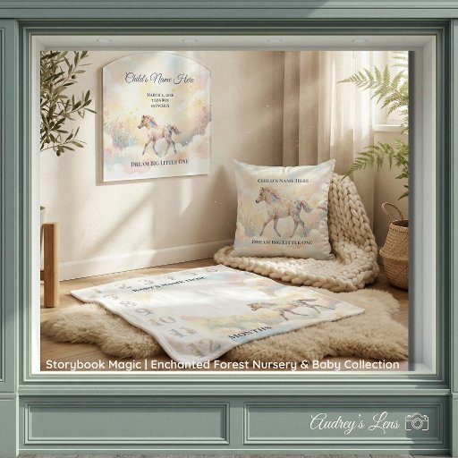 A Magical Beginning Awaits Invite your loved ones to a celebration as enchanting as a classic fairytale with our Storybook Magic Enchanted Forest Invitation. Part of a curated nursery and event collection, this design features a whimsical watercolor horse nestled within a dreamlike woodland setting.