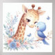 Storybook Woodland Spädbarn Giraffe och Blue Bird Poster