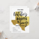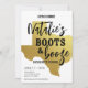 Gör hennes Texas Sängkammarparty drömmar till verklighet med denna fantastiska Stövlar & Sprit Texas Sängkammarparty Inbjudan. Fokusera på den lyckliga damen med dess glamourösa svarta och gyllene design och Texas gyllene karta, redo för henne att ta på sig stövlarna och ha kul!